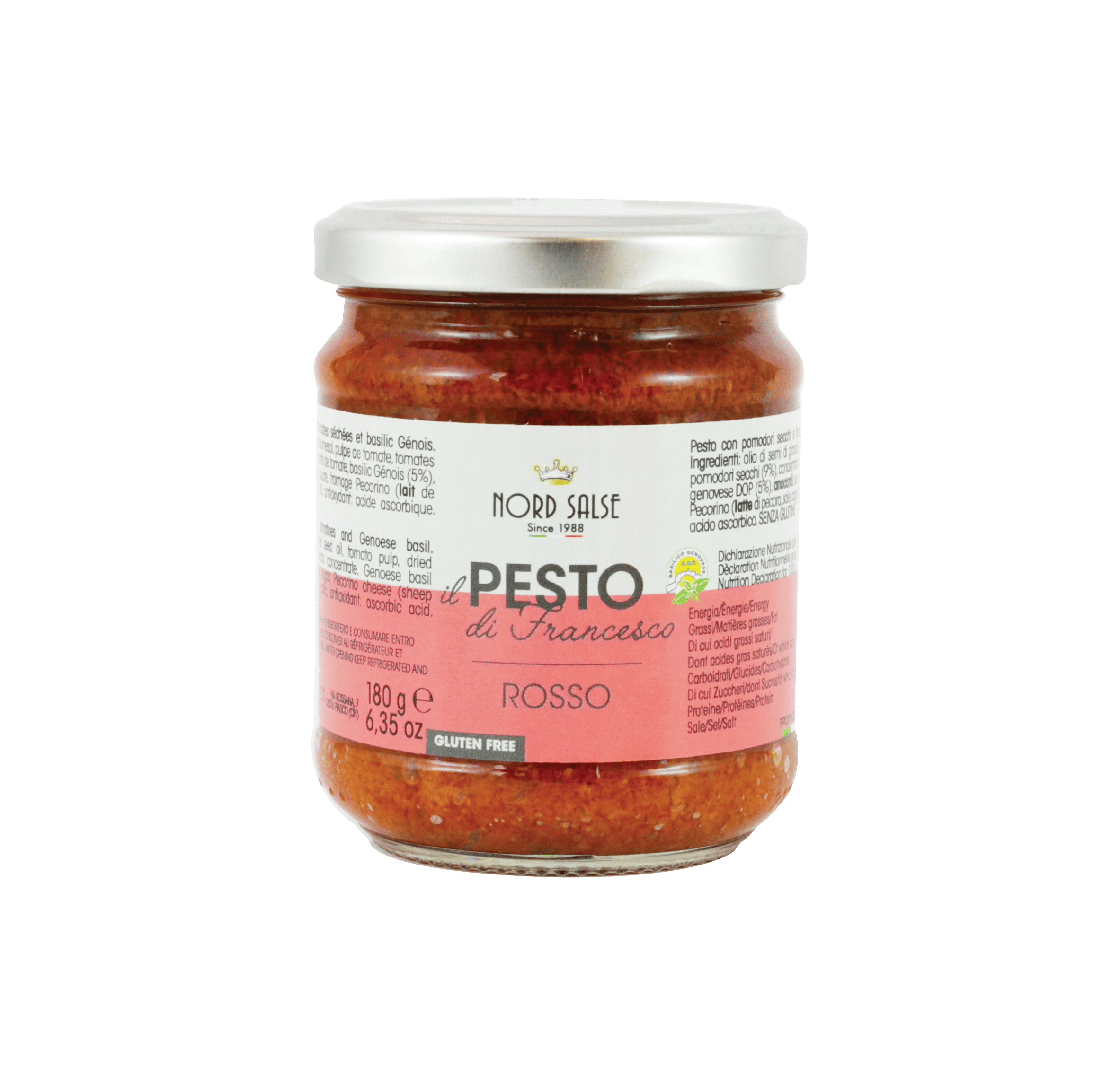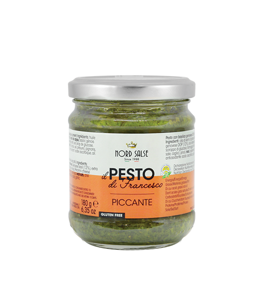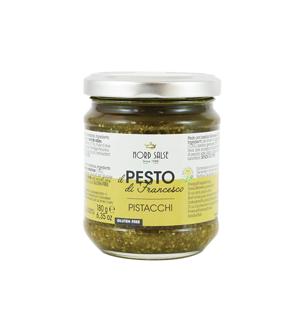 Il pesto di Francesco con basilico genovese DOP è preparato esclusivamente con basilico Genovese DOP, il miglior basilico che esista sul mercato per dolcezza, tenerezza e intensità del sapore. Al profumo del basilico si unisce una nota decisa conferita dall’olio extra vergine e dal Pecorino Romano DOP. Il connubio perfetto per una ricetta delicata e raffinata allo stesso tempo. La ricetta si conserva a temperatura ambiente ed è perfetto per chi è alla ricerca di un prodotto dall’alta resa, dal colore intenso e che rispetti la tradizione del pesto all’Italiana.
